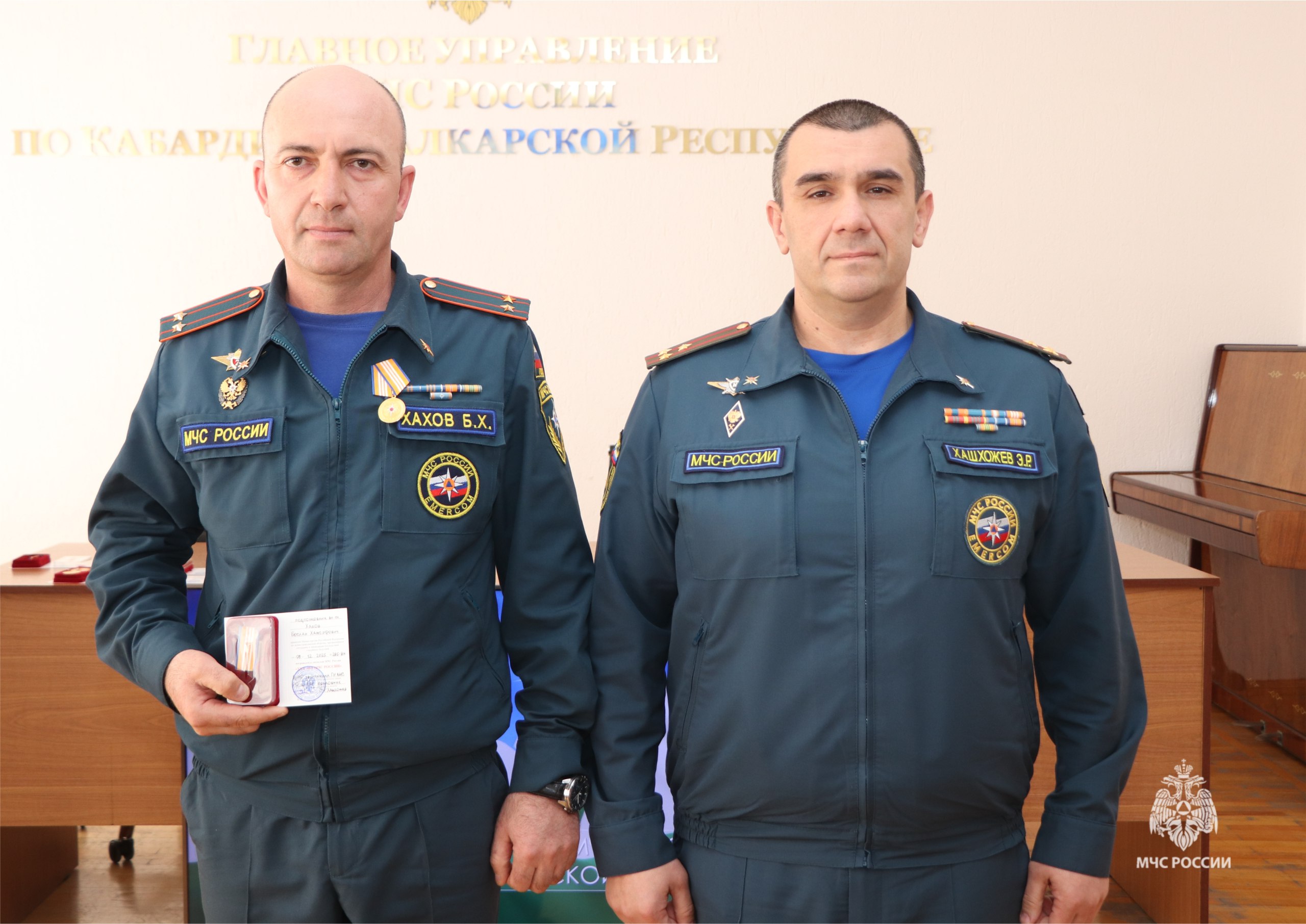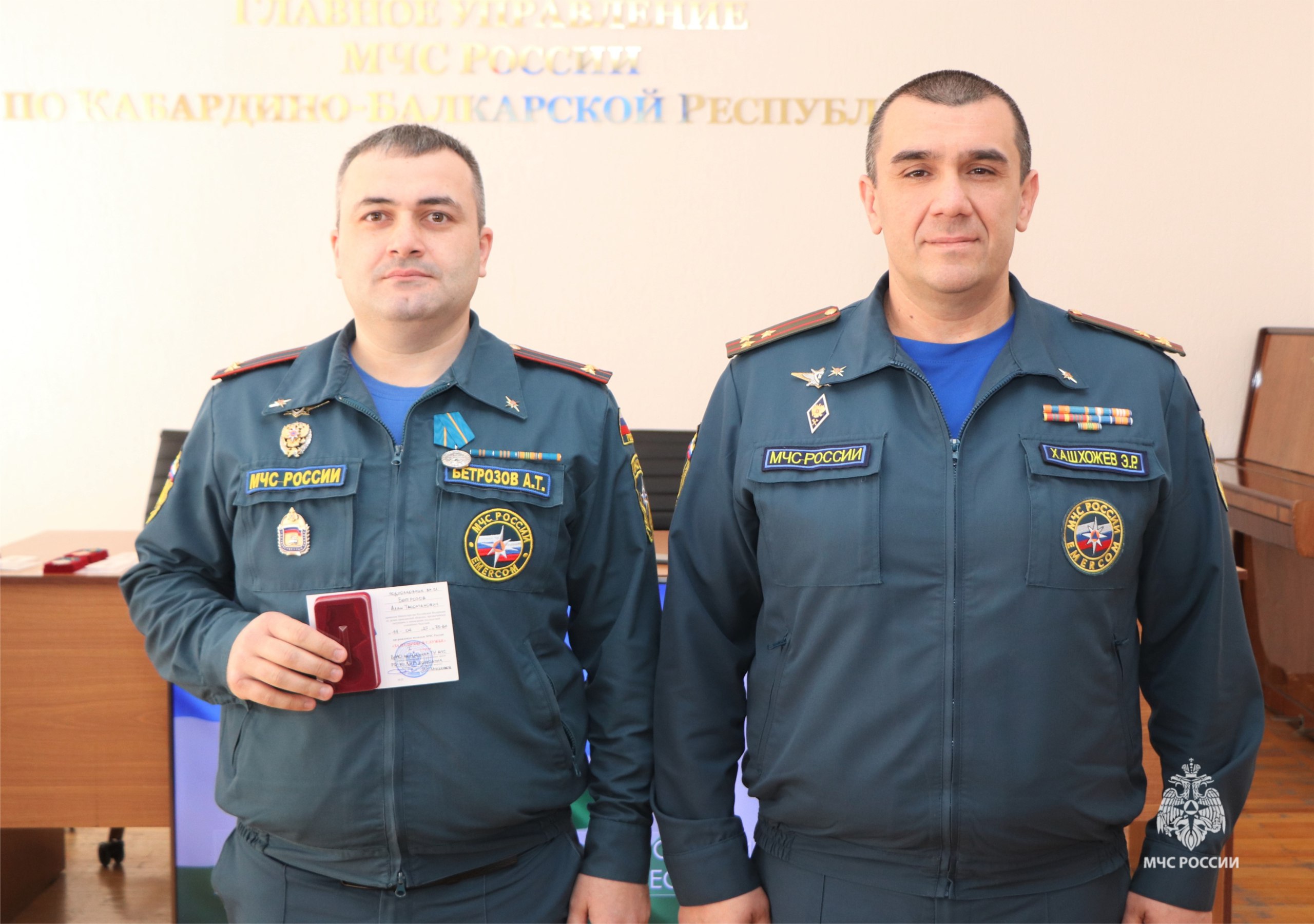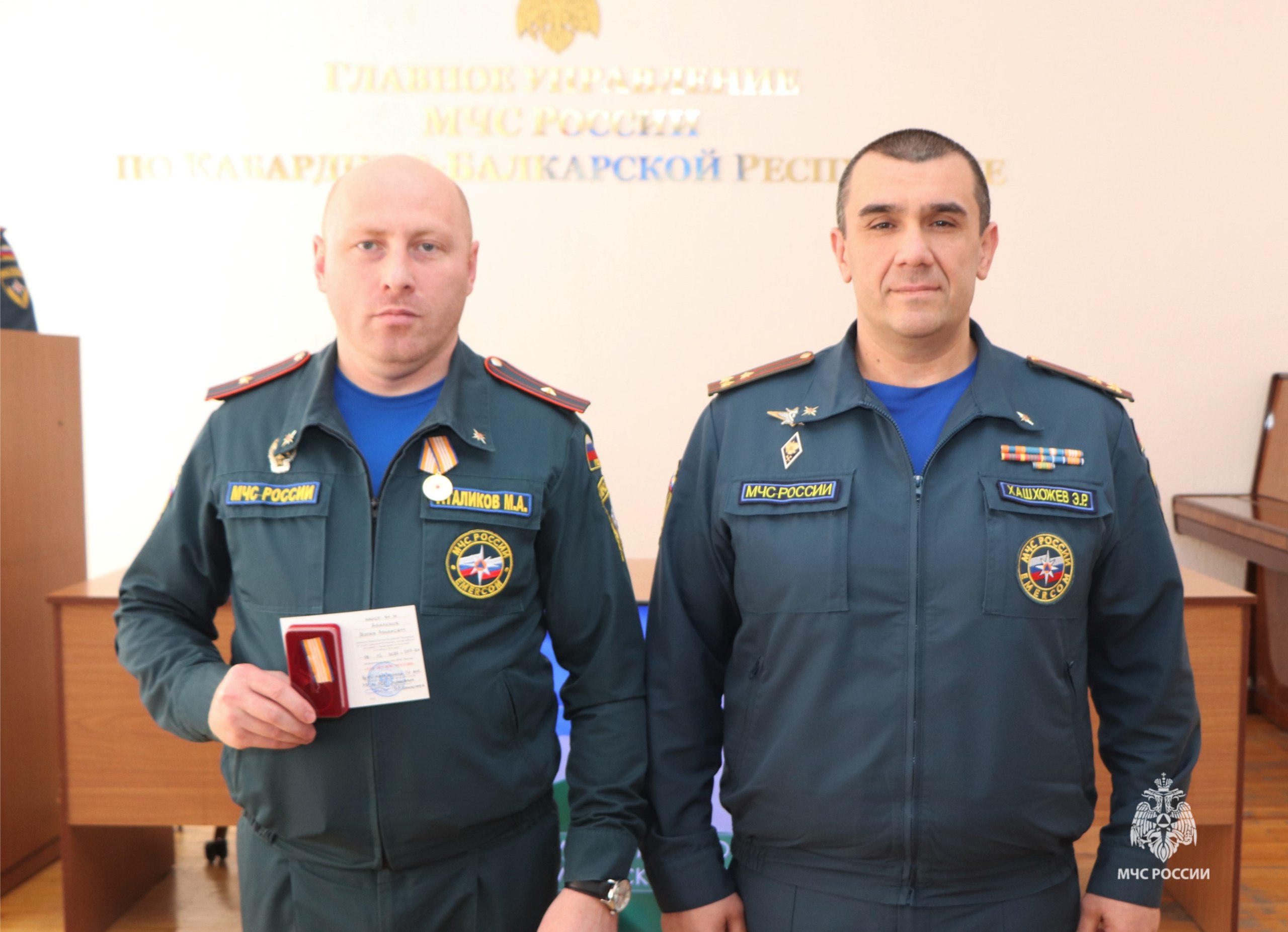 Сегодня в Главном управлении МЧС России по КБР состоялось награждение личного состава ведомственными наградами. Награждение проводил ВрИО начальника Главного управления МЧС России по КБР Эльдар Хашхожев.