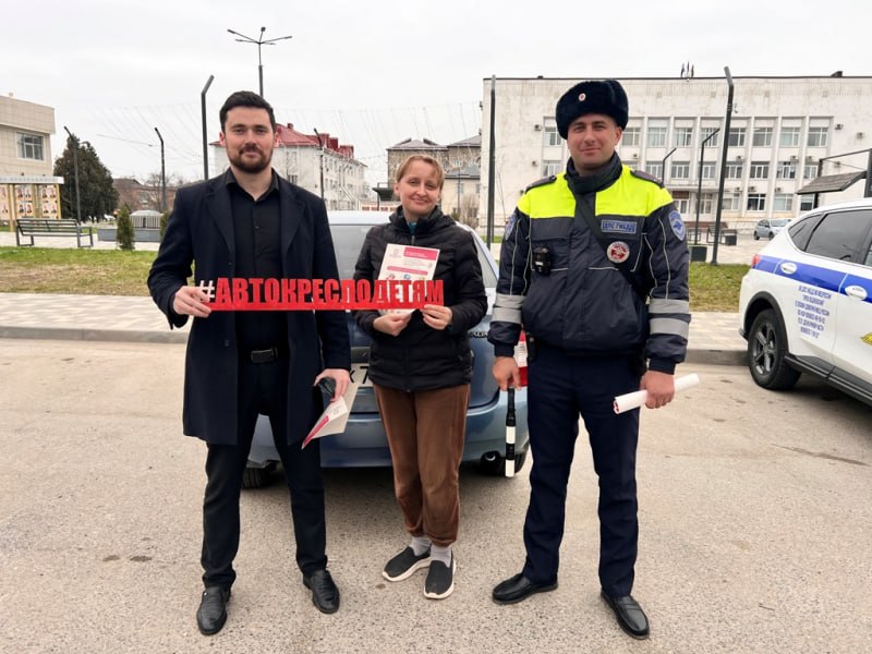 Сотрудники Госавтоинспекции МО МВД России «Прохладненский» вместе с представителем муниципалитета Алхасом Соновым провели социальную акцию «Пристегнись и пристегни ребенка».