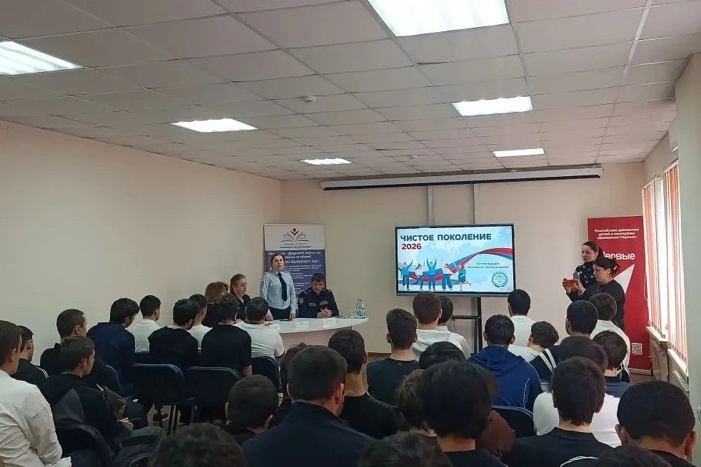 В рамках общероссийской акции «Чистое поколение-2026» инспекторы по делам несовершеннолетних МО МВД России «Баксанский» совместно со старшим оперуполномоченным Управления по контролю за оборотом наркотиков МВД по Кабардино-Балкарской Республике подполковником полиции Ириной Давыдовой провели в Кабардино-Балкарском сельскохозяйственном колледже г. Баксана масштабное профилактическое мероприятие «Светлое будущее начинается с чистых решений».