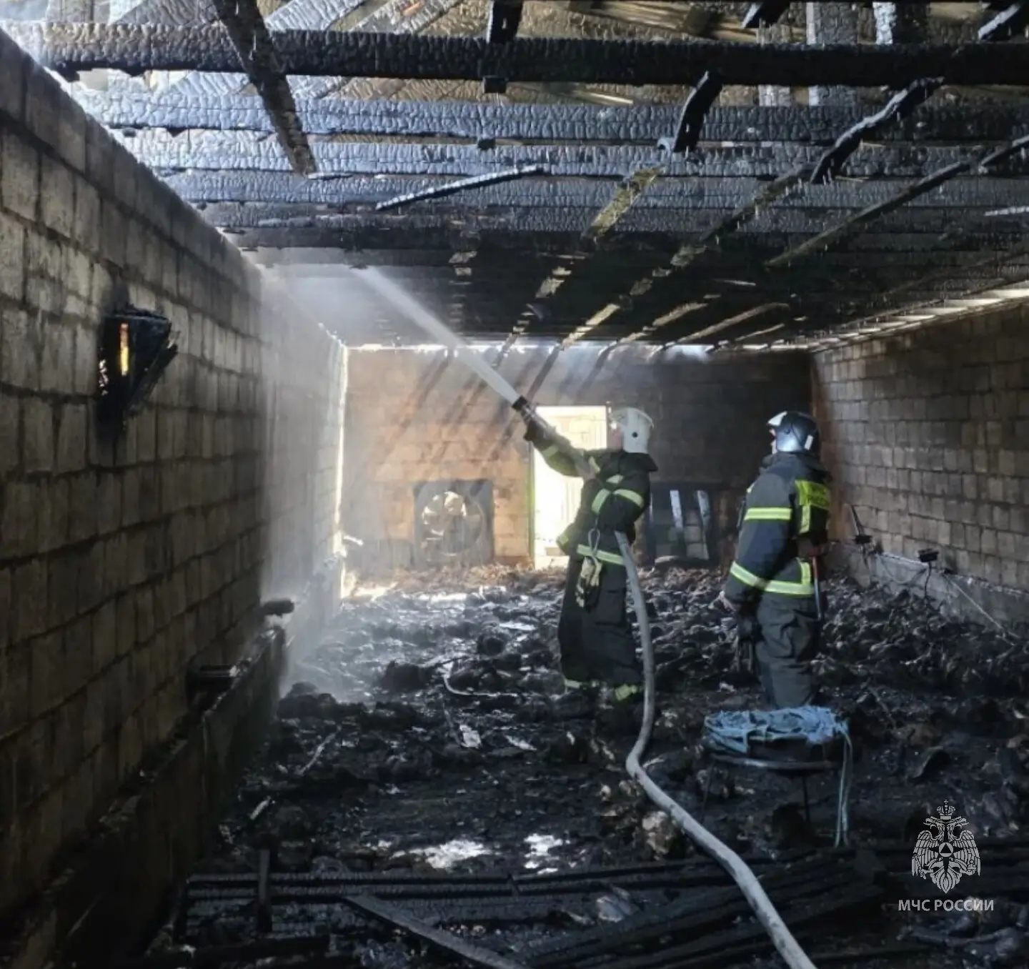 Пожар полностью ликвидирован на площади 200 квадратов. Дознавателем МЧС России установлено, что предварительной причиной послужил аварийный режим электросети.