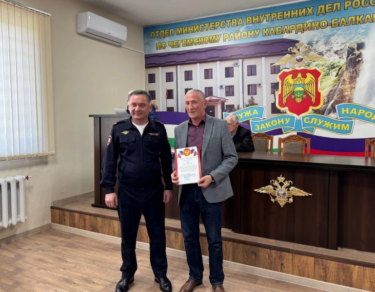 Руководством отдела отмечен неоценимый вклад ветеранской организации Чегемского района и ощутимая помощь в профессиональном, патриотическом и нравственном воспитании сотрудников.