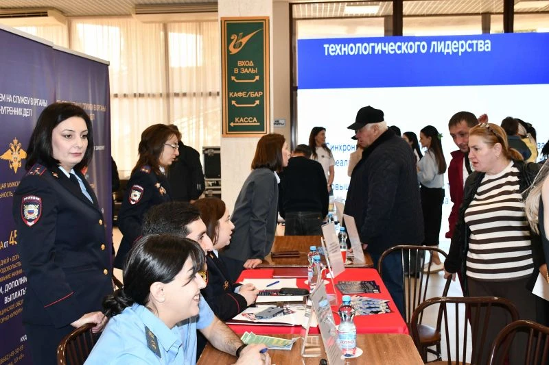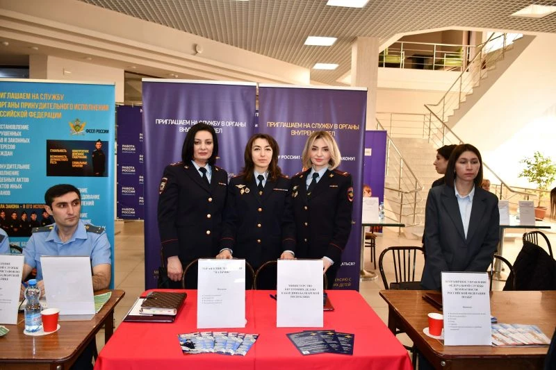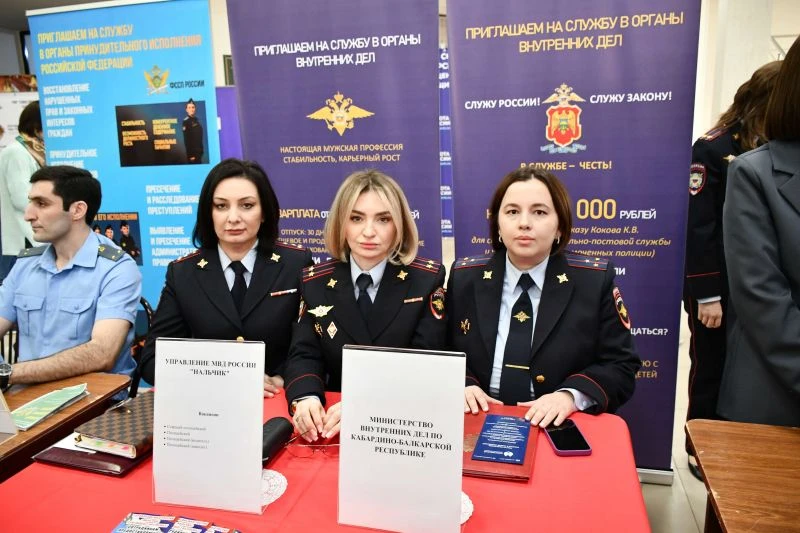 Мероприятие, которое проводится ежегодно с 2023 года по поручению Президента РФ, собрало соискателей и работодателей из разных отраслей, в число которых вошло и Министерство внутренних дел по Кабардино-Балкарской Республике.