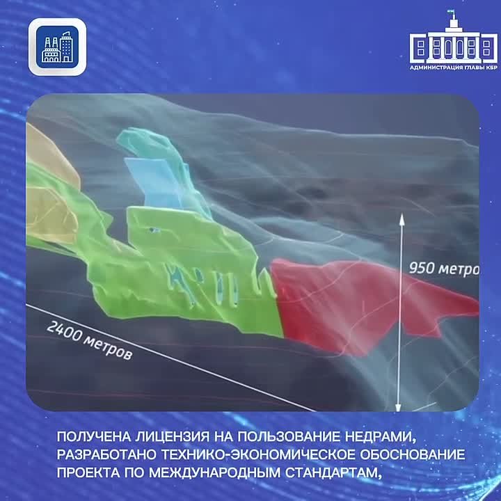 Первый этап проекта «Возобновление добычи и переработки вольфрамо-молибденовых руд Тырныаузского месторождения» уже завершен: получена лицензия на пользование недрами, разработано технико-экономическое обоснование проекта по международным стандартам, оценены запасы месторождения и приобретены горнокапитальные выработки.