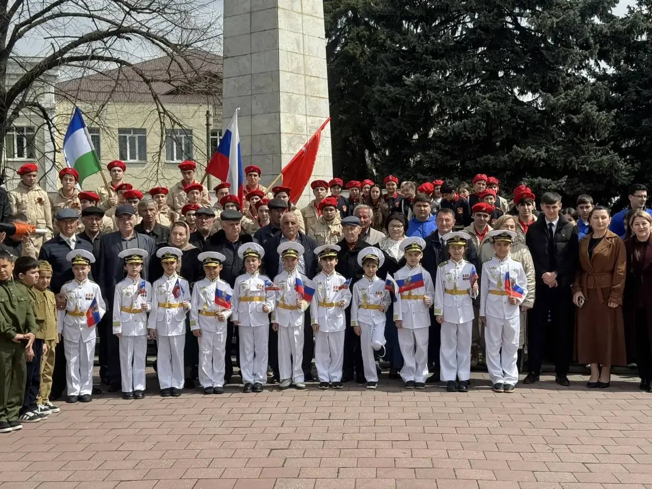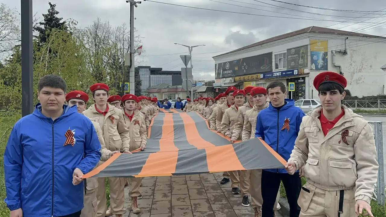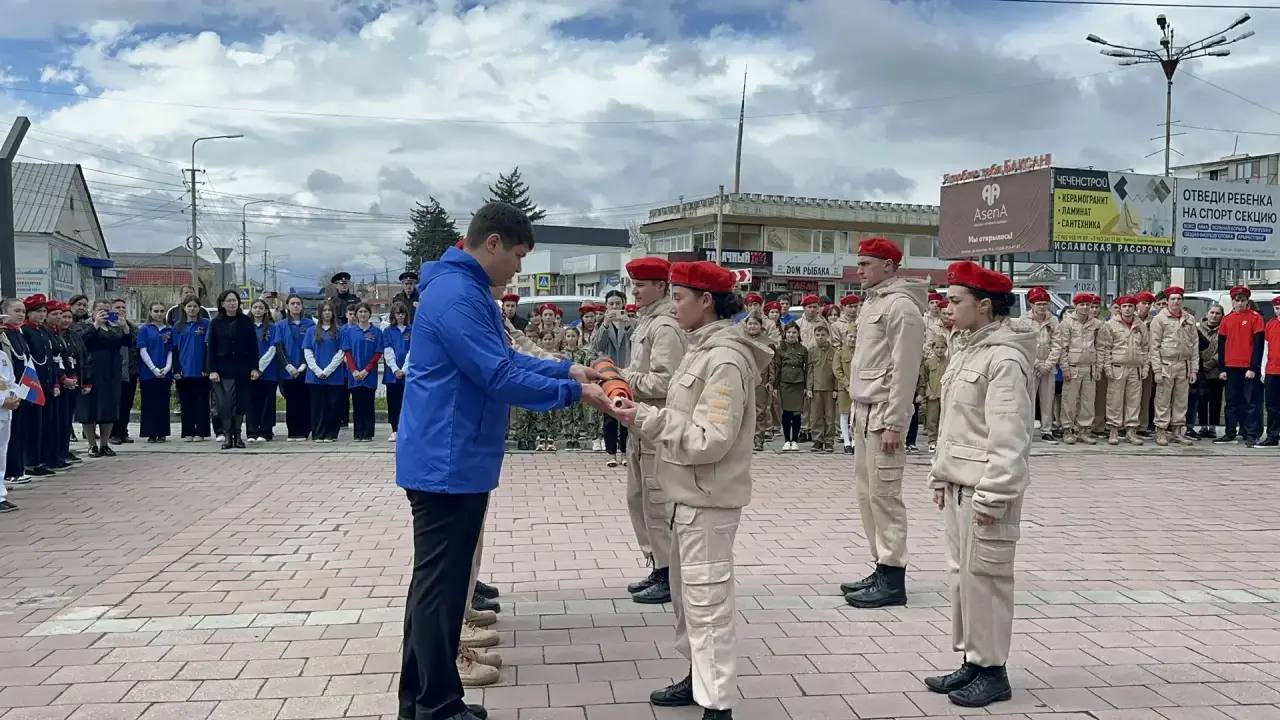 Ежегодная всероссийская акция «Эстафета памяти» - передача Георгиевского полотна районам Кабардино-Балкарии - прошла в городе Баксане возле мемориального комплекса «Вечный огонь Славы».