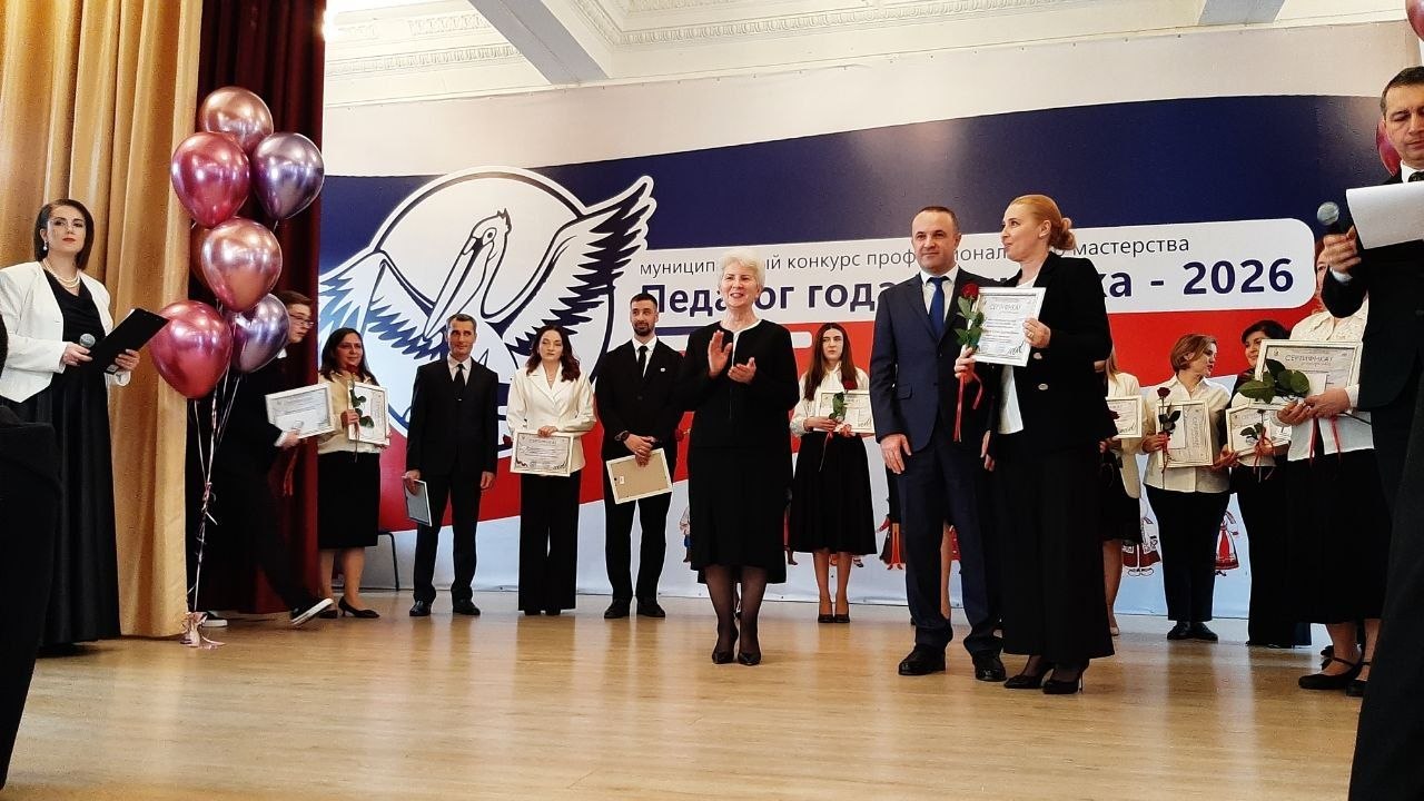 В 4-й гимназии проходит церемония торжественного закрытия конкурса профессионального мастерства "Педагог года Нальчика - 2026", который прошёл под девизом "В единстве наша сила!".