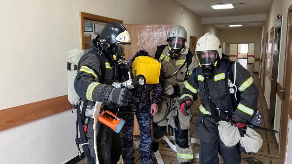 Согласно легенде, возгорание произошло на третьем этаже административного здания территориального управления Росгвардии, в результате которого пострадал один человек.