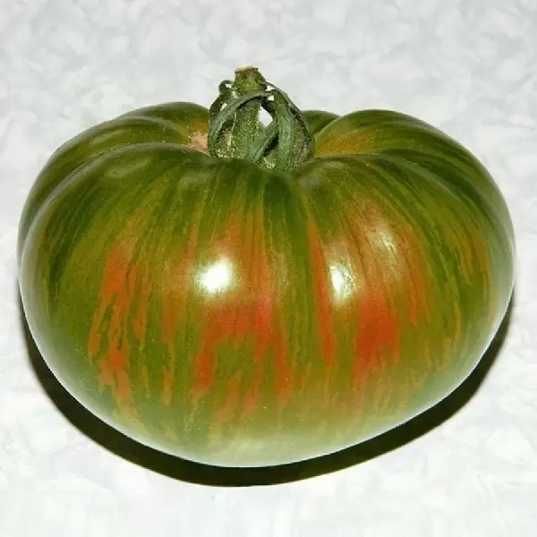 Плоды «Хипповой зебры» имеют плоско-округлую форму с характерными темно-зелеными полосами на зеленом фоне. По мере созревания эти томаты превращаются в яркие малиново-красные с почти шоколадными полосами. Внутри они мясистые, с минимальным количеством семян и сладко-пряным вкусом, напоминающим малину или сливу. Важно, чтобы плоды были собраны вовремя, иначе они могут не достичь своего полного вкусового потенциала.