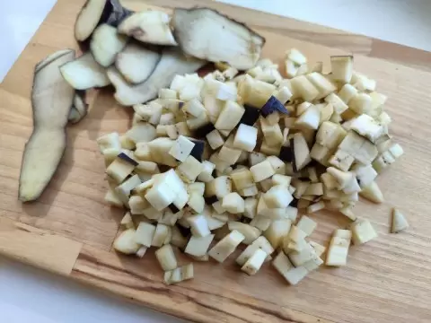 Чтобы начать, баклажан нужно нарезать небольшими кубиками. Существуют разные способы его приготовления: можно запечь в духовке, но гораздо быстрее использовать сковороду. Баклажан нужно обжарить с небольшим количеством масла до мягкости, после чего отложить в сторону.