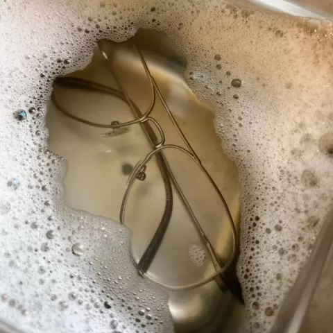 - Очки помещаются в специальную ультразвуковую ванночку, наполненную водой с добавлением моющего средства.