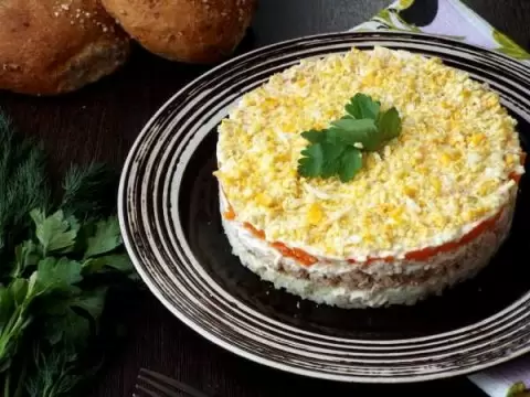 - Натирайте ингредиенты над салатом, чтобы слои получались более воздушными.