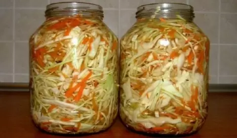 - Приготовление: мелко нашинковать капусту, натереть морковь, смешать их, добавить специи и аккуратно перемешать. После этого уложить в чистую банку и добавить солевой рассол, подготовленный из воды, соли и сахара. Закрыть банку крышкой и оставить на несколько дней в теплом месте для ферментации.