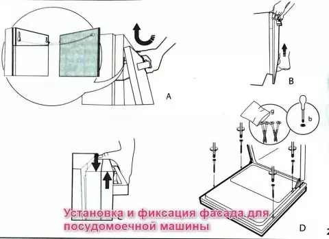 - Следует тщательно измерить ширину и высоту фасадной панели, сверив размеры с инструкцией производителя. Если панель слишком тяжелая, это может негативно сказаться на работе дверцы посудомоечной машины.