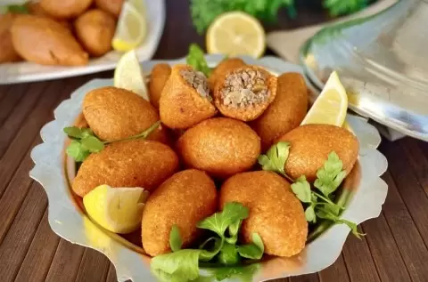 При создании этого блюда используется мелкий булгур, манка или даже вареный картофель, из которых формируется тонкая оболочка, напоминающая тесто. Внутрь кладется обжаренный мясной фарш, приправленный луком и сочетающийся с грецкими или фисташками. Процесс приготовления требует мастерства: каждая котлета формируется вручную и может обжариваться во фритюре или вариться в воде.