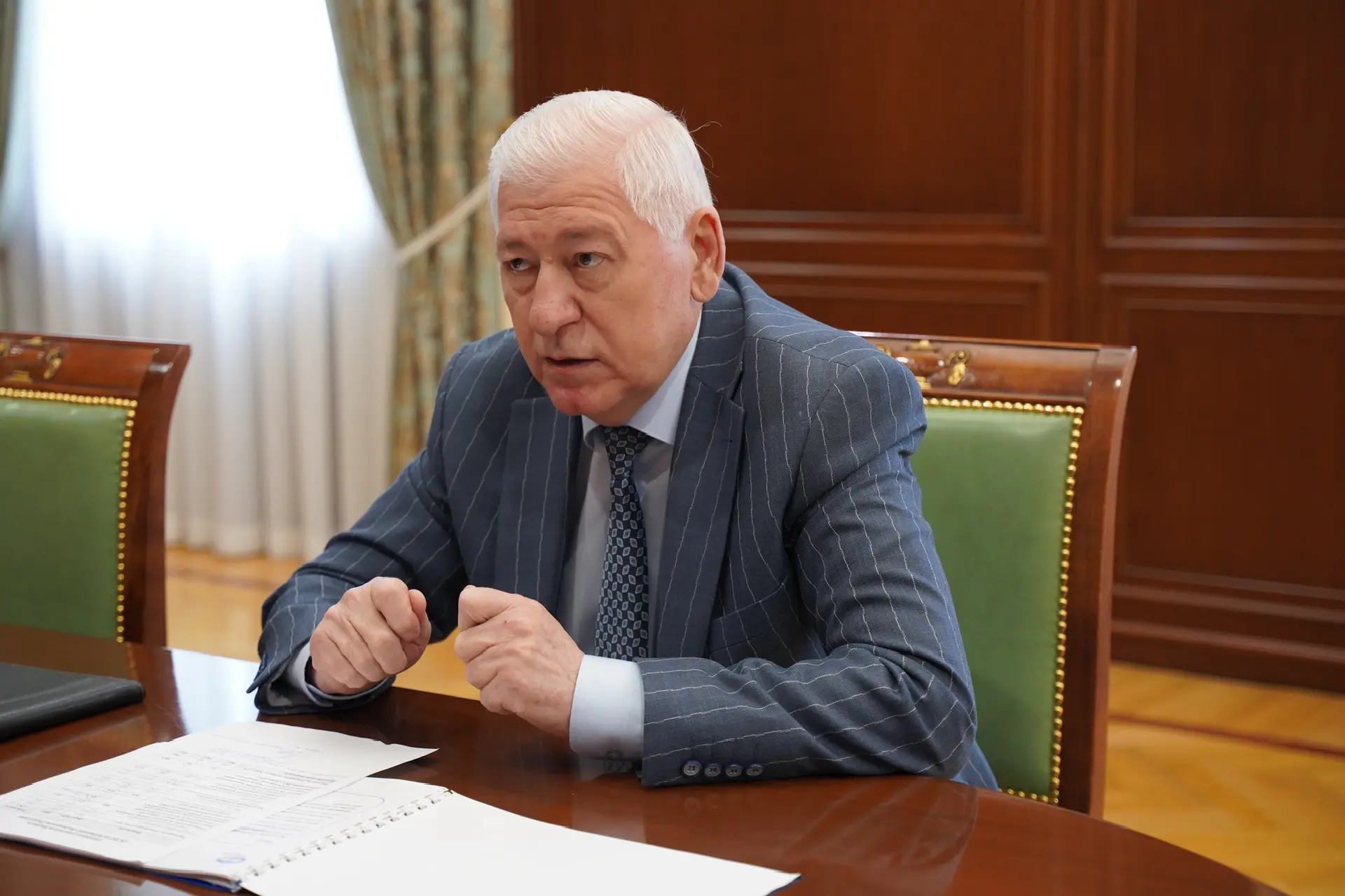 Провел также рабочую встречу с управляющим Отделением фонда пенсионного и социального страхования РФ по Кабардино-Балкарской Республике Николаем Баковым.