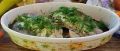 - Выложить соус поверх рыбы в форме для запекания и украсить ломтиками лимона.