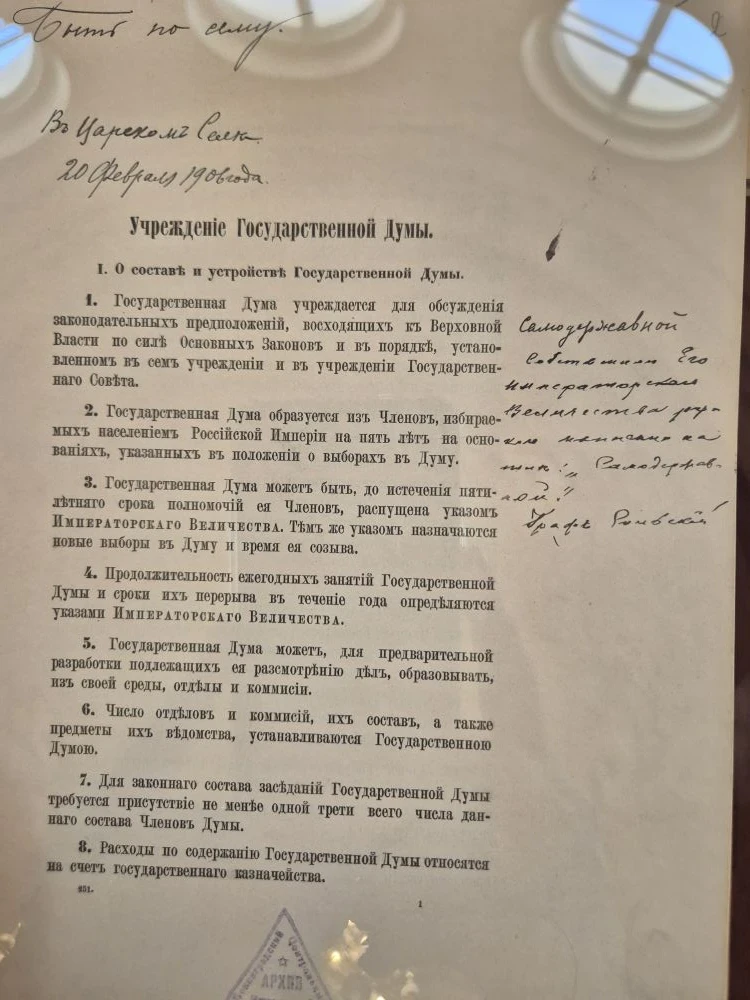 На выставке представлены исторические документы, среди которых – текст речи императора Николая II от 27 апреля 1906 года, стенограммы первых заседаний, государевы манифесты о создании Государственной Думы и реформировании...