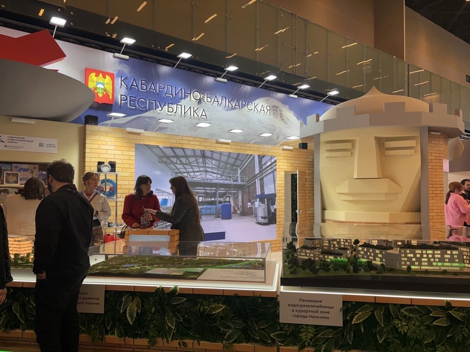 На коллективном стенде Кабардино-Балкарии представлены три инвестиционных проекта по развитию курорта Нальчик, визуализированные в виде макетов.