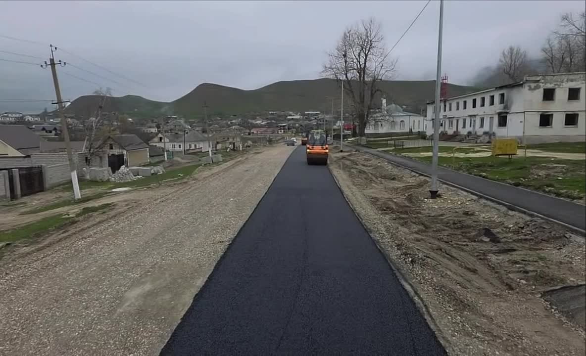 В селении Кичмалка продолжается устройство асфальта на автодороге Малка — Ингушли по улице Чкалова